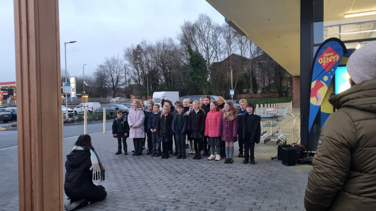 The opening was started with a performance from Ashby Hill Top Primary School, who sang some Christmas songs outside the main entrance.