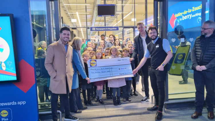 A cheque of £500 was presented to Ashby Hilltop Primary School before customers were allowed to enter the store.