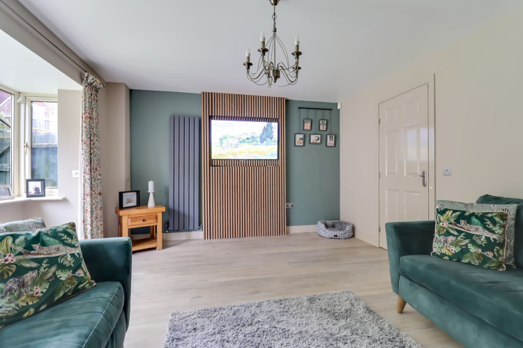 Step inside the welcoming entrance hall, where a staircase rises to the upper floors and a convenient toilet is tucked away. The ground floor is truly the social hub of the home. To the rear, the bright, generous lounge is the perfect place to relax, bathed in natural light and featuring striking bay French doors that open directly out to the garden. This connection to the outside creates a fantastic atmosphere for entertaining. At the front, the well-appointed kitchen-diner offers ample room for family meals, complete with an integrated oven and plenty of space for your freestanding appliances.